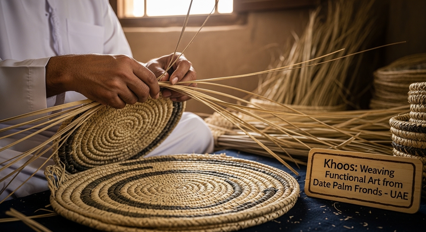Byinfo@crafts.UAEHistoryAndCulture.comDecember 5, 2025 Khoos: Weaving Functional Art from Date Palm Fronds Traditional Crafts